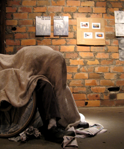 In November of 2006 From the Gut had the honor of being asked to curate/create a show at local art space Alley Culture. After considering many angles, we decided to attempt a more straightforward curation, but to do so in a way that would transform the space of the gallery and create a deep ambiance. The theme we chose, 'Hope Thought Darkness,' attempted to combine the at odds focus of the overly positive with the overtly negative and suggest a balanced approach to artistic expression and even beyond that - to life. We featured works primarily from Detroit artists, but also a few other individuals who have been crucial to our development. In the end darkness became something not to be feared, but rather to be accepted, and then on the other side - light.