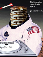 A tongue in cheek play on the long standing 'Noise Pancakes' event from S.F., Breakcore pancakes has sought to wake people up with loud, abrasive music and pancakes, and send them into their Sunday. The truth is that it's not always breakcore, exploring a variety of contemporary electronic sounds in through both live and dj sets. One of the most productive additions to this project has been various skillshares that we conduct during the event, for instance the DIY solar panel project and other experiments in alternative technology. Read below for more detail on activities on each individual event.